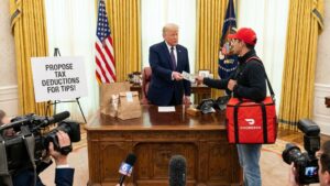 Trump Stages Oval Office DoorDash Delivery, Tipping $100 to Promote Tax Deductions