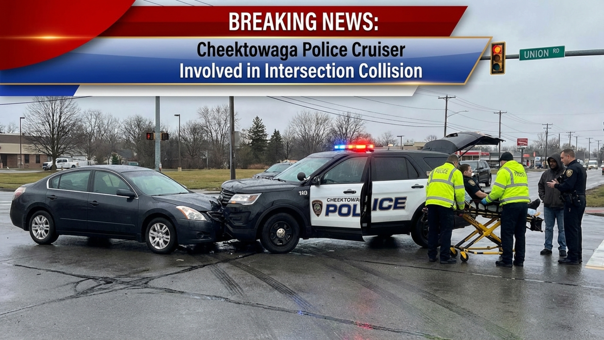 Cheektowaga Police Vehicle Struck During Emergency Response at Busy Intersection