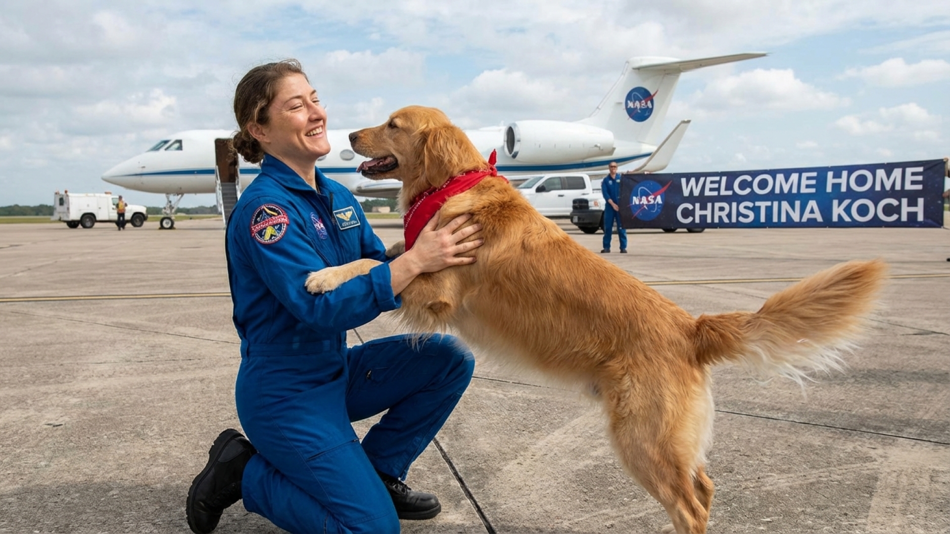 Astronaut Christina Koch Receives Tail-Wagging Welcome Home After Historic Moon Mission