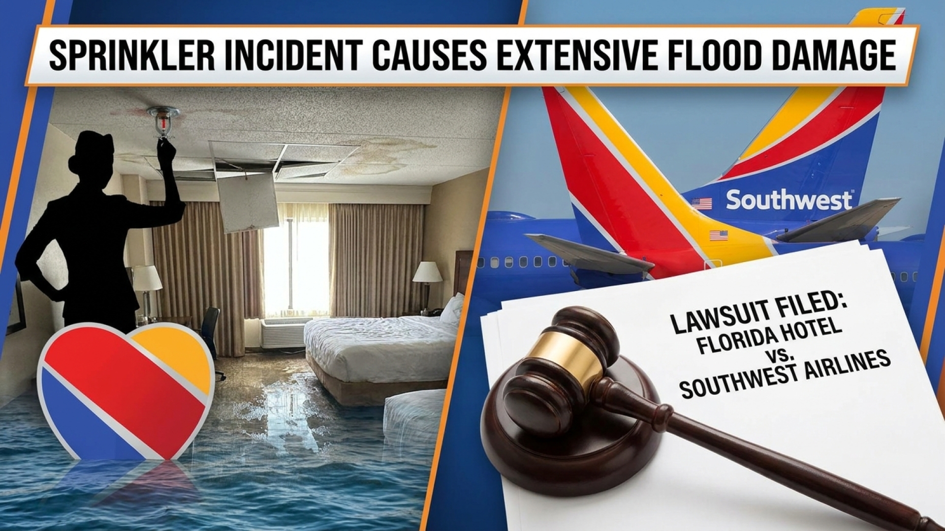 The core of the complaint alleges that a Southwest flight attendant “negligently interfered” with the hotel room’s fire suppression equipment. This interference triggered the sprinkler system, leading to an immediate and heavy discharge of water. The resulting inundation was not contained to a single unit; the volume of water was sufficient to flood several adjacent and lower-level rooms.